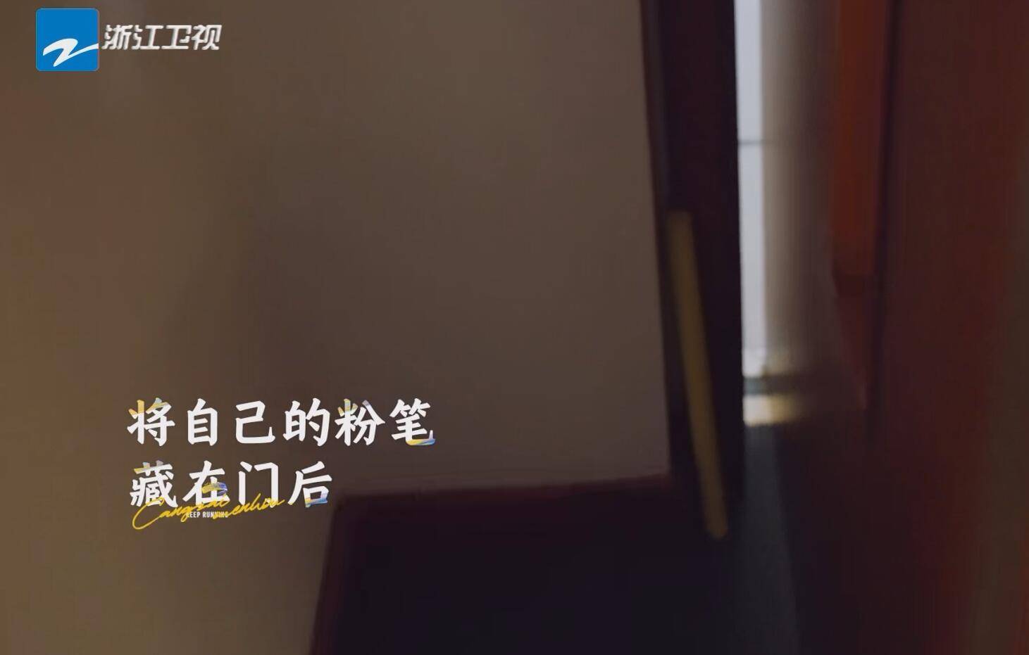 然而,在刚藏的时候粉笔就掉下去摔断了,更惨的是藏粉笔的过程还让沙溢看到了。