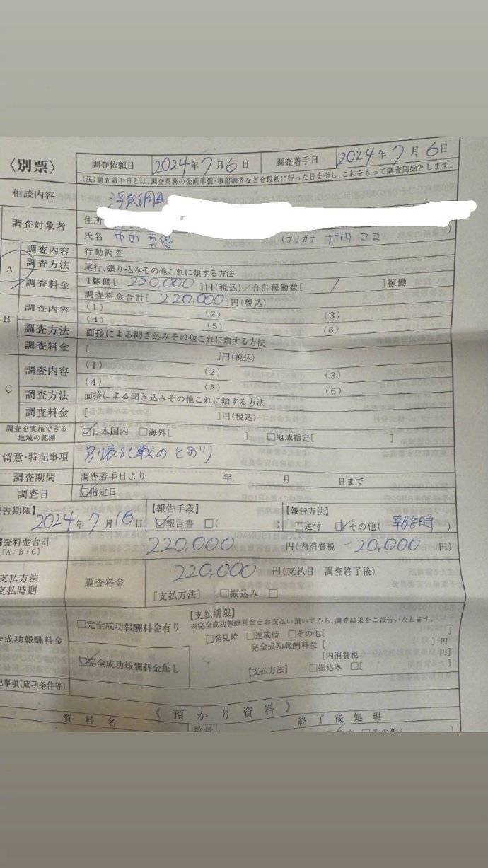爆料账号“DEATHDOLNOTE”公开了一份私家侦探委托书,显示调查对象为本名“中田真优”(与进藤天音百科记载的本名一致),委托时间为2024年7月,调查费用22万日元(含税)。更引人注目的是,流出的LINE聊天记录中出现了大量亲密对话,如“想抱紧你到融化”“亲亲”等,且互动时间与调查期高度重合,疑似坐实出轨指控。