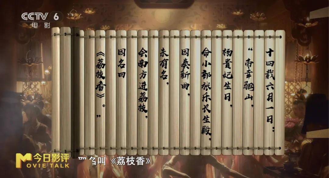 刘后滨认为,电影的叙事比较严谨且紧凑,同时,故事的创作也存在一定的历史依据。“进贡荔枝这件事在历史上记载留白很大,但电影做了很细致的功课。”他举例道,《唐人笔记》中记载,天宝十四载六月初一日,唐玄宗在华清宫为杨贵妃庆生时,因岭南进贡的荔枝到场,将一曲乐舞命名为《荔枝香》;晚唐诗人杜牧“一骑红尘妃子笑,无人知是荔枝来”的诗句,更是对唐玄宗晚年消极怠政的讽刺。这些细节都被电影巧妙融入叙事。