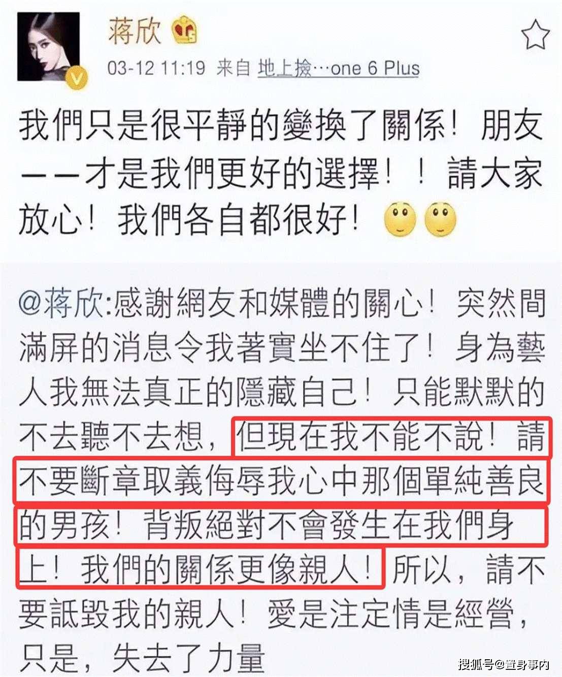 只是蒋欣在面对这段感情时,显得更加低调,更加得体。