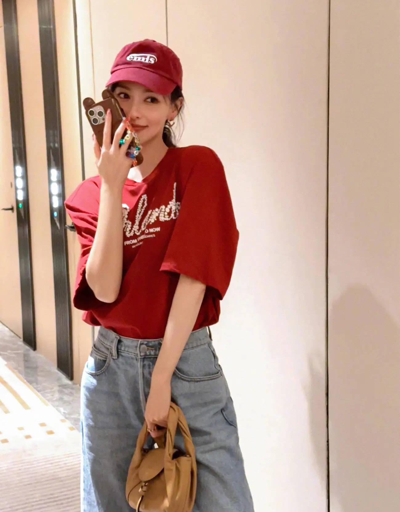 搜狐娱乐讯 25日,41岁唐嫣在社交平台上更新一组美照,她身穿红色印花T恤搭配浅蓝色牛仔裤,戴着红色鸭舌帽,打扮时髦吸睛,活力十足,状态似少女!