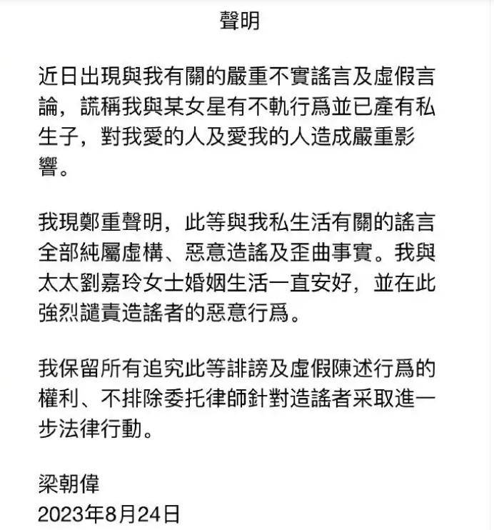 后来,连梁朝伟本人都看不下去了,他和刘嘉玲共同发布声明辟谣。