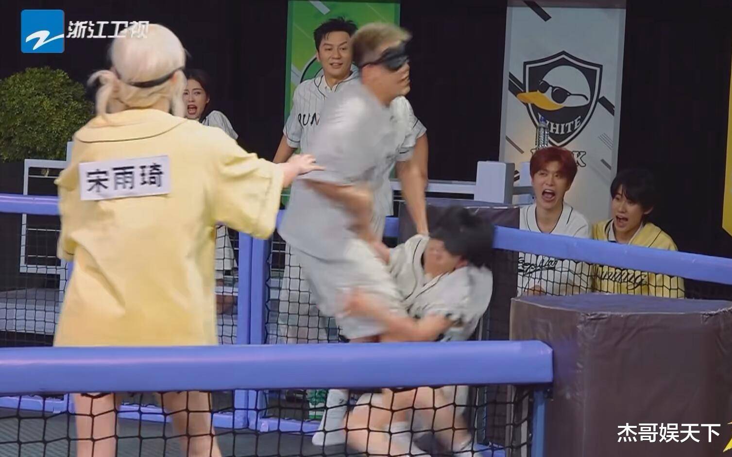 先说周深。在“蒙眼撕名牌”的过程中,因被郭艾伦拖拽而火速登上热搜榜。几天来,关于周深的话题持续热度不减。镜头中清晰可见,周深脖子和脸部出现了细微擦伤,体型上他与郭艾伦的巨大差异,使得他在对抗中显得极为吃亏。郭艾伦身形魁梧,周深则如小鸡仔般被牵扯,场面颇有“被虐”感。