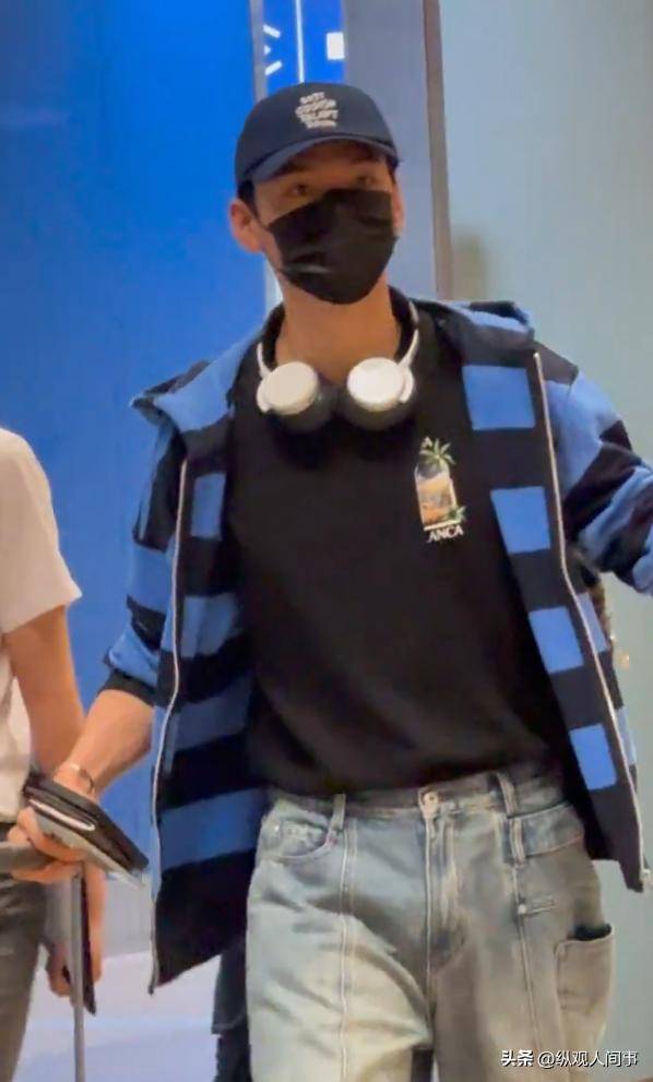 这次他捂得特别严实,帽子、口罩和外套全都整上了,都快要看不清人脸了,但是从露出来的侧脸看,还真是有些变黑了呢。