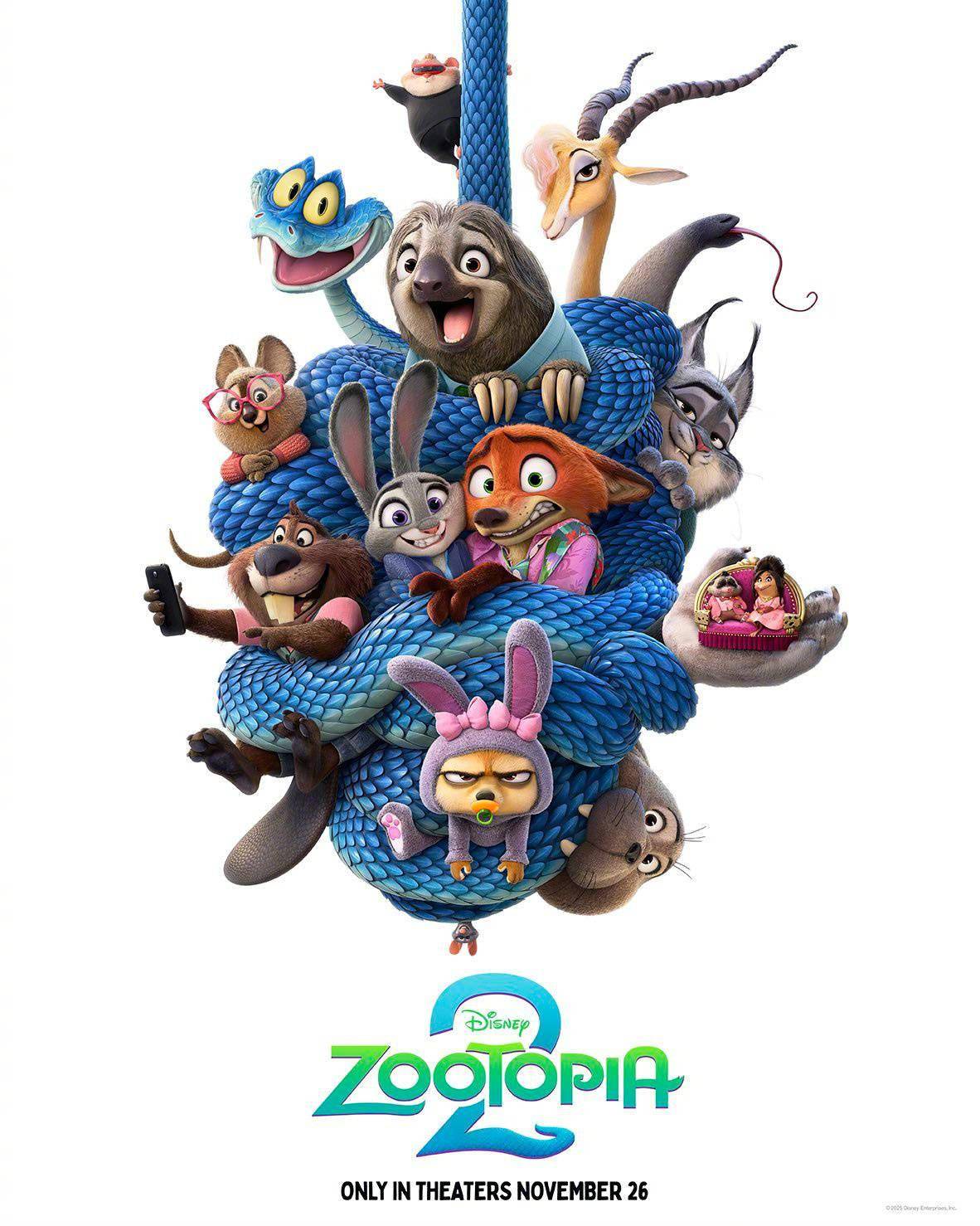 1905电影网讯7月30日,迪士尼动画电影(Zootopia 2)发布全新预告及海报。海报中,新角色蛇盖瑞将新老角色物理性“绑定”,除了主角兔朱迪、狐尼克,夏奇羊、树懒闪电等人气角色也回归,还有换上兔子装的“小嘟嘟”芬尼克,欢乐氛围满溢。