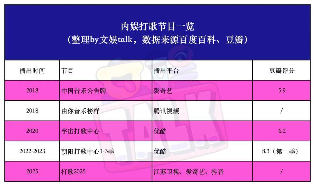 从普通打歌,到直播打歌,再到融合社交式打歌,打歌类节目跟其他音综一样,在不断地创新,搞出新玩法,只是一番试水后,打歌节目目前在内娱并未培养出核心的受众,观众对于打歌仍然没有概念,歌手推出新单曲,也不需要集中走上打歌舞台,通过这一渠道面向大众。