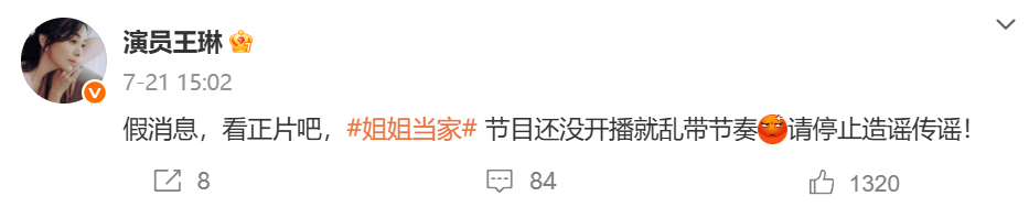 7月21日,演员王琳发文回应节目预告片中“王琳疑似被儿子掌掴”的争议:“假消息,看正片吧,节目还没开播就乱带节奏,请停止造谣传谣!”