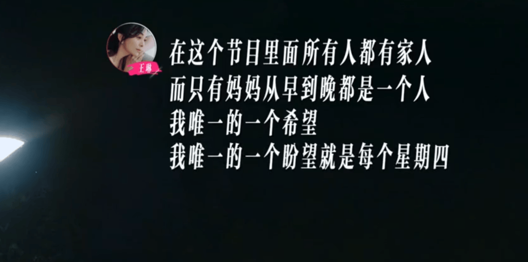 王琳表示:“你所做的一切我都没有百分之百支持你?那我录制一个节目你为什么不能支持我一下?在这个节目里所有人都有家人,而只有妈妈从早到晚都是一个人。”