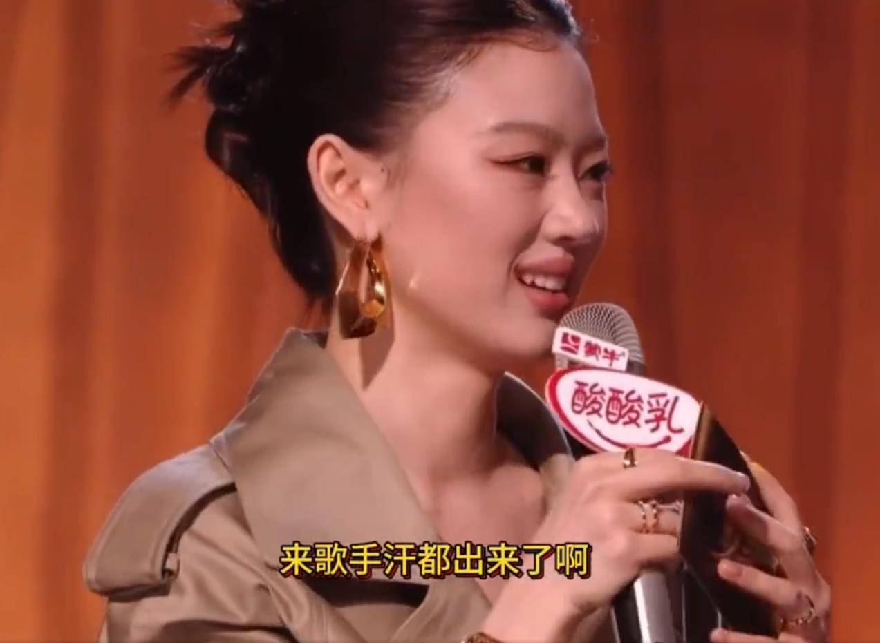 更绝的是突围赛里,她临时顶替串讲人,结果紧张到手卡狂掉、嘴瓢不断,被何炅戏称“全自动闯祸机”。直播中她直接吐槽:“本以为不唱歌能轻松点,结果串讲更紧张!”这波自曝短板反而让观众直呼真实:“终于看到活人综艺了!比剧本式完美有趣多了。”事后她火速找补“来歌手不后悔”,还借机强化“反差萌”人设,把自嘲玩成圈粉利器——毕竟,能笑着把“后悔”变成段子的,内娱也没几个。