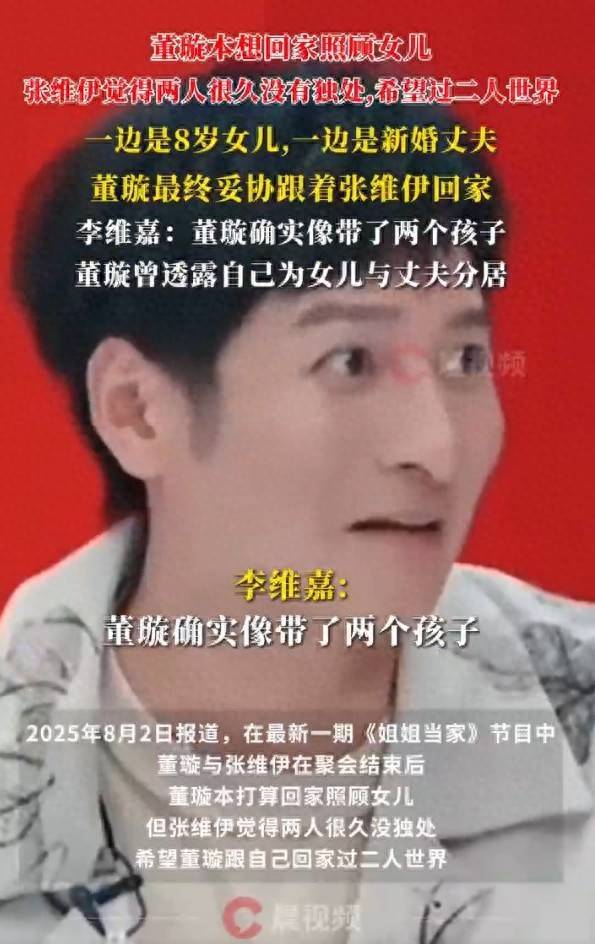 在之前的节目中,董璇谈及再婚后的生活时,透露与新任丈夫张维伊选择了分开居住。她解释道,考虑到女儿的成长和需求,作为女孩的她不可能与父亲住在同一屋檐下。