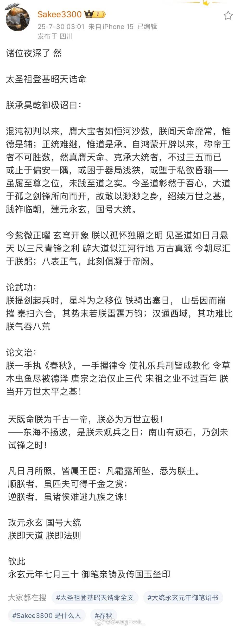 1.Sakee深夜宣告太圣祖登基!昭天诰命!