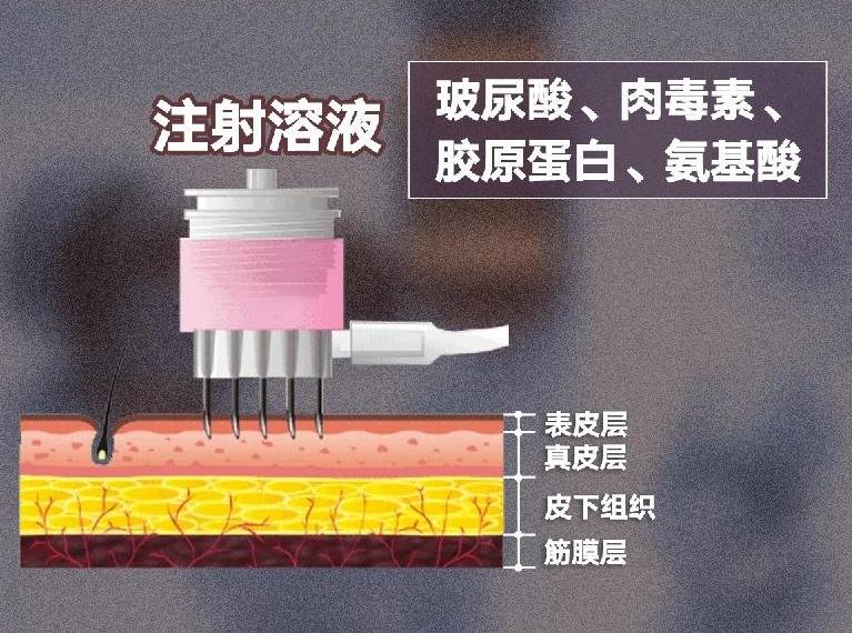 水光针的注射物有多种搭配,其中,玻尿酸是最常用的成分之一,而玻尿酸俗称透明质酸,是人体本身含有的物质,负责储存水分,增加皮肤弹性。