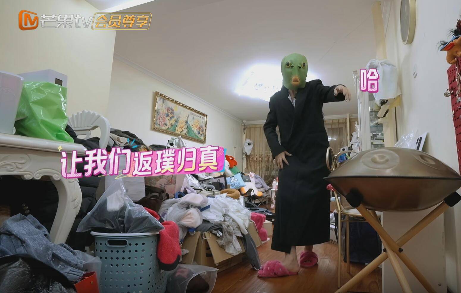 在节目中,管乐展示了一个头套,她从抽屉里翻出来,戴上之后还跳了一段舞蹈。