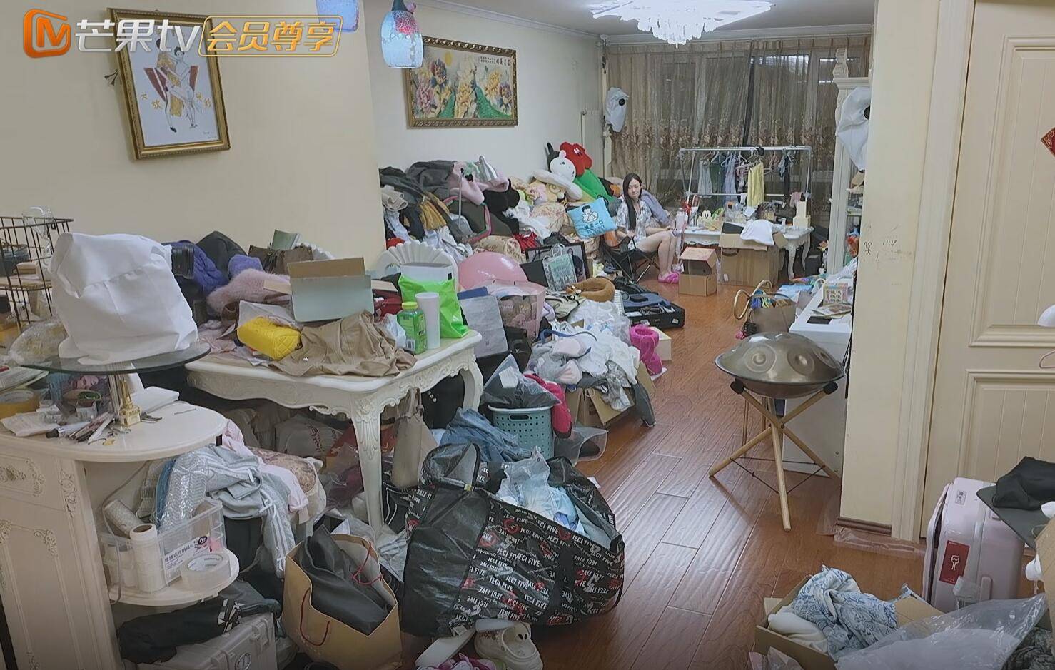 在一开始的时候,大家看到管乐拆快递的时候,以为只是她坐的这个周围有一点乱。