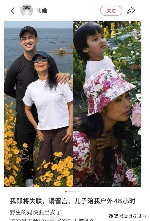 旁边驴友认出韦唯求合影,她搂着儿子肩膀笑得眼角叠起细褶。