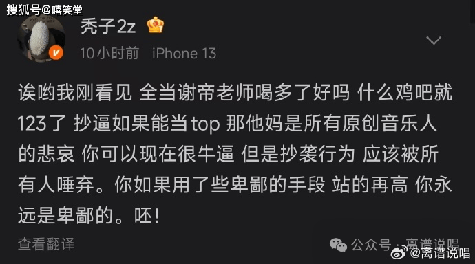 “全当谢帝老师喝多了好吗!抄袭如果能当top,那是所有原创音乐人的悲哀!”