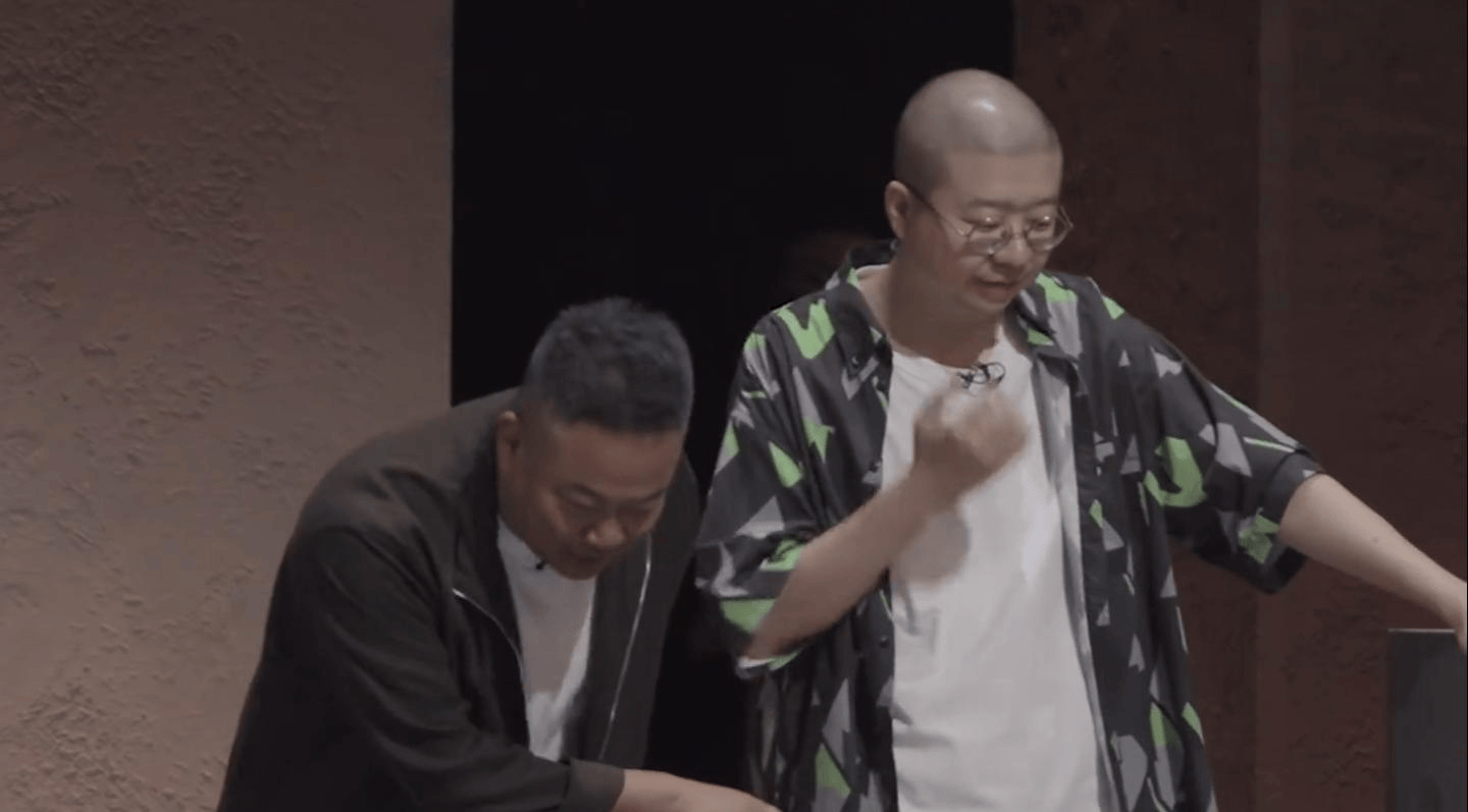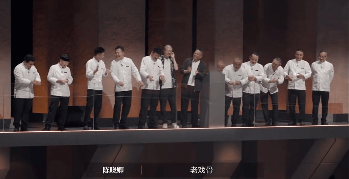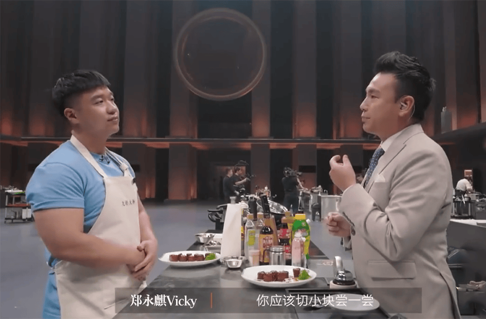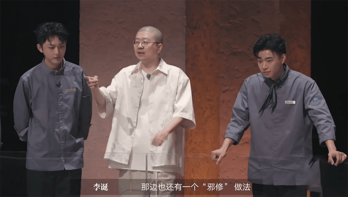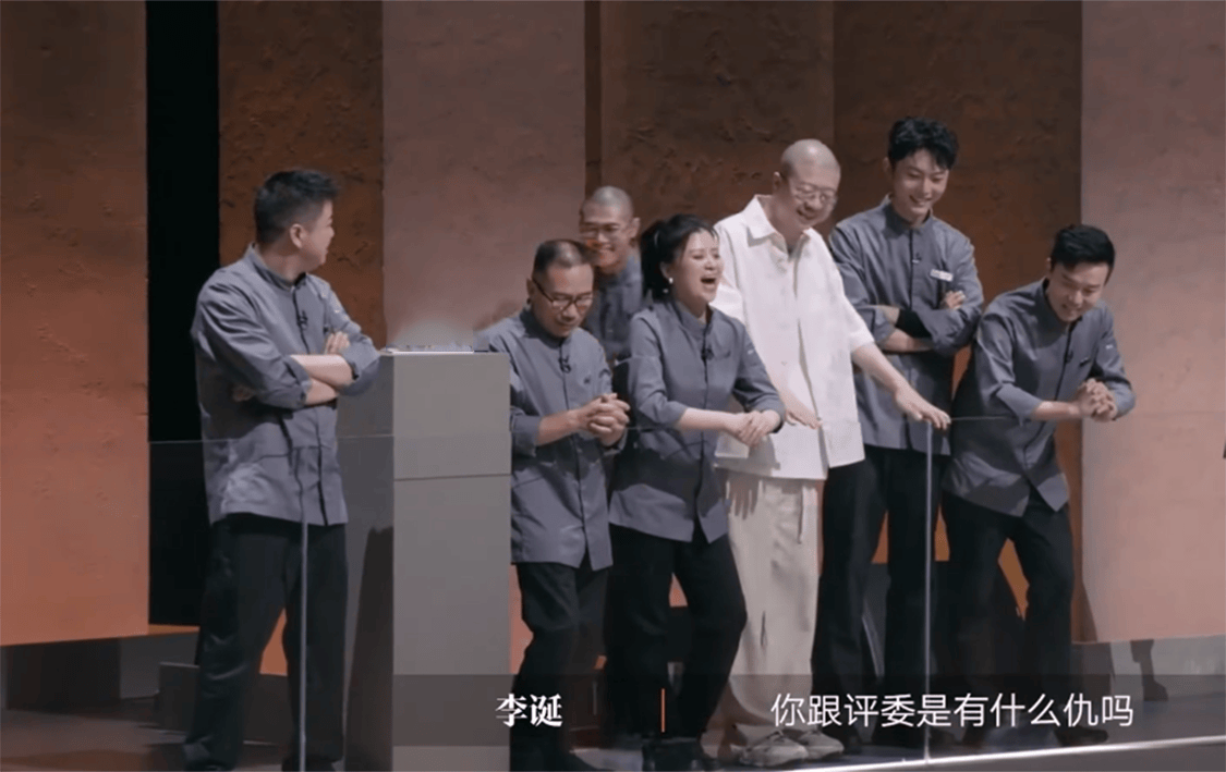 第一期,他向小厨提问:“这个手法叫什么?” 结果被一个“低温慢煮”怼回去,全场顿时哄笑,而他也只能尴尬地笑着。不过,这一笑与他在脱口秀舞台上那种掌控全局的笑容完全不同——仿佛一个被拔掉电池的玩偶,笑容只剩惯性,失去了真正的生气。