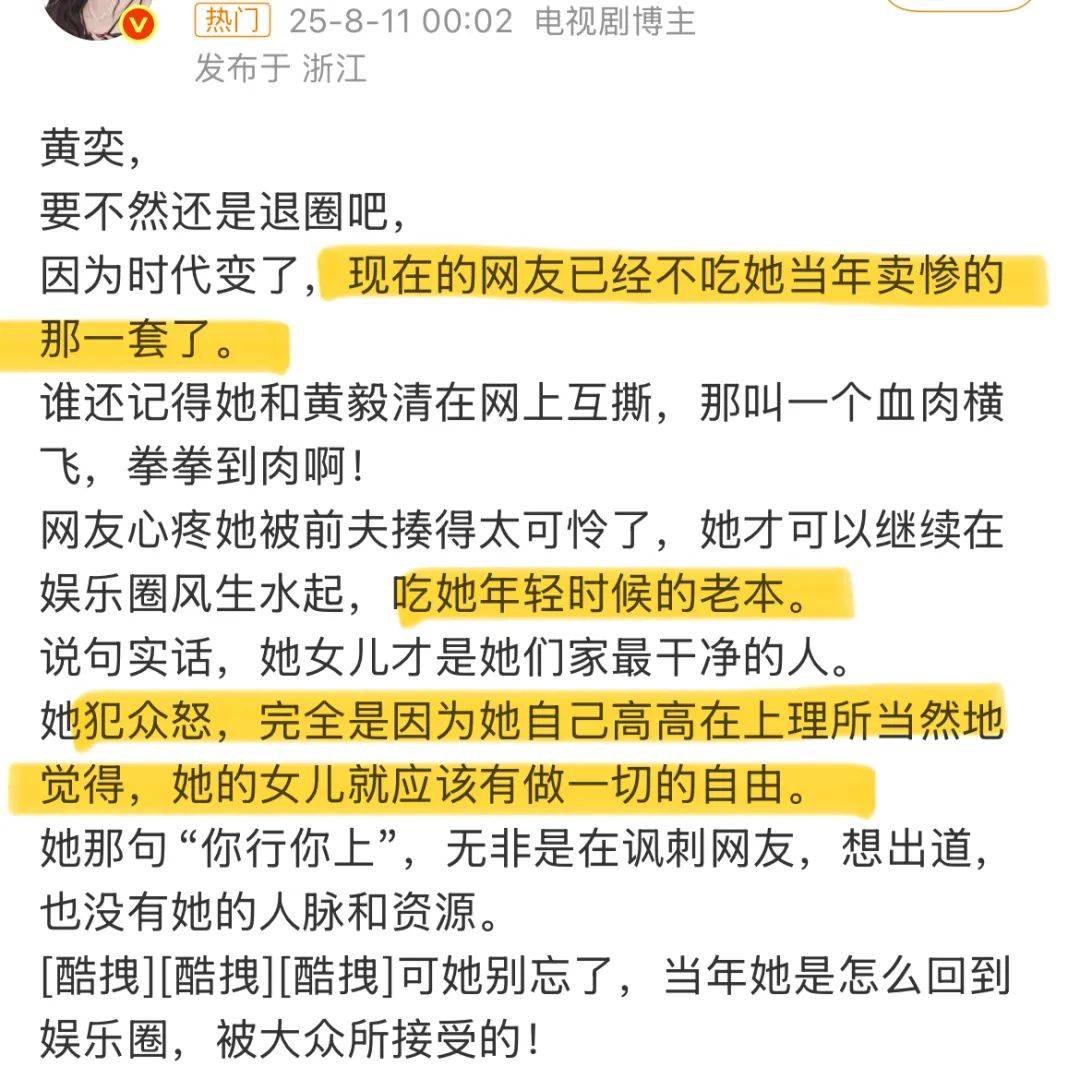 然而等到黄奕被第二任前夫黄毅清爆锤,姜凯才跑出来锤她,说她是偷腥的猫。