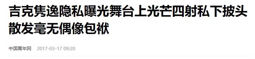 信源:中国青年网、吉克隽逸隐私曝光舞台上光芒四射私下披头散发毫无偶像包袱