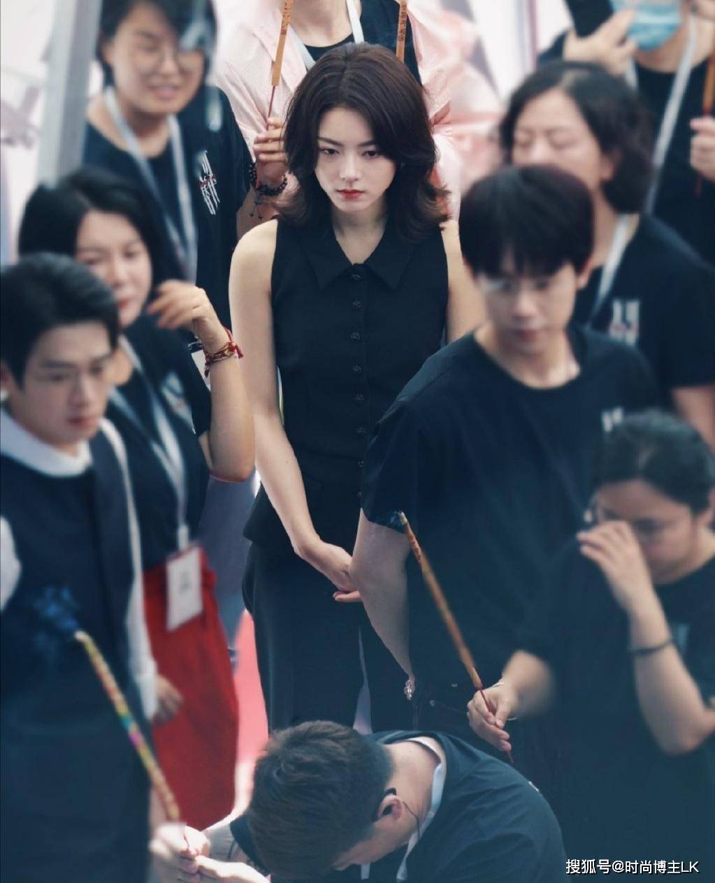 在开机现场中,她在一众工作人员的簇拥下,自信满满,气场十足,身上已经有了明显的“星味儿”,和周围人美得不像一个图层。