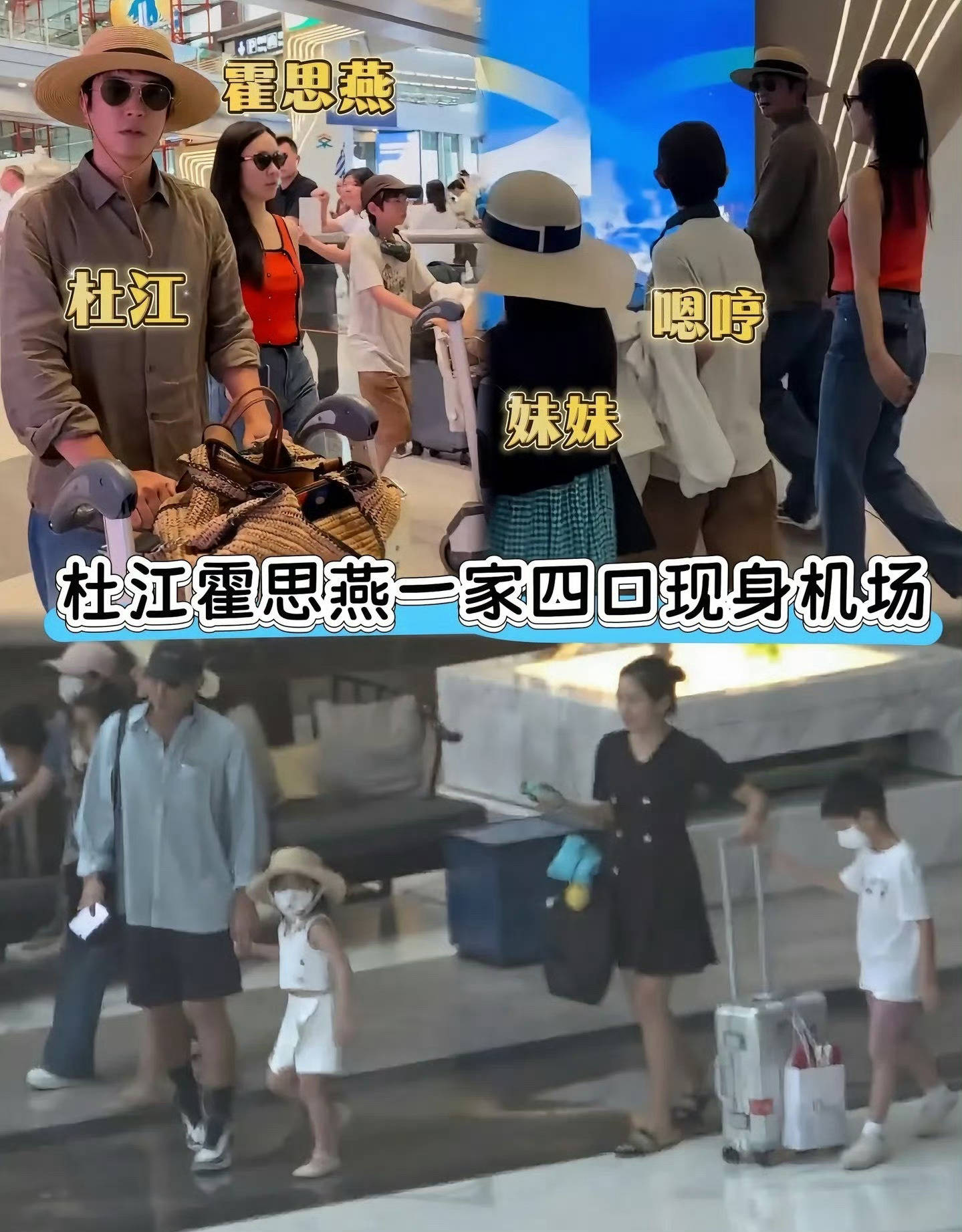 杜江霍思燕一家四口现身机场。