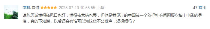 说陈思诚懂得搭风口也好,懂得去营销也罢,但他是我见过的中国第一个敢把社会问题屡次拍上电影的导演,真的不知道,以后还会有谁可以为这些不公发声,短视频吗?