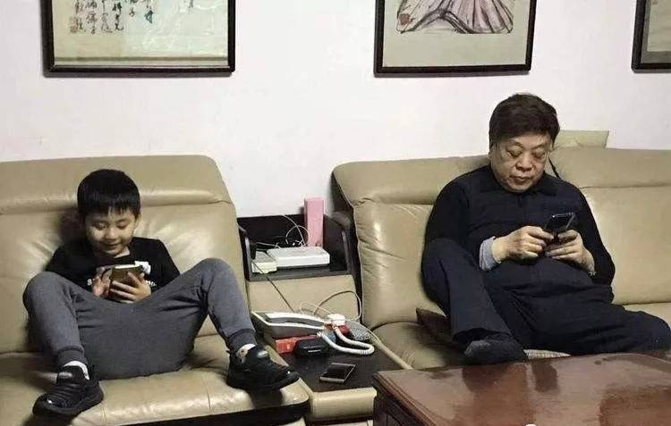 他还晒出了和孙子一起看手机的照片,爷孙俩非常和谐,一老一少,很是温馨。