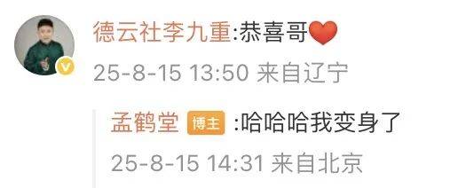 德云社众星火速赶到评论区祝贺,李九重留言:“恭喜哥”,孟鹤堂回复:“哈哈哈我变身了”;冯照洋表示:“好家伙,终于来了,恭喜”,孟鹤堂则分享了初为人父的喜悦:“谢谢大哥,太可爱了,化了”。