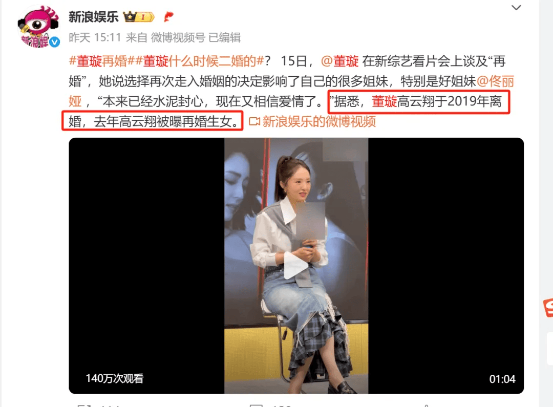 董璇高云翔于2019年离婚,去年有媒体报道高云翔再婚生女。