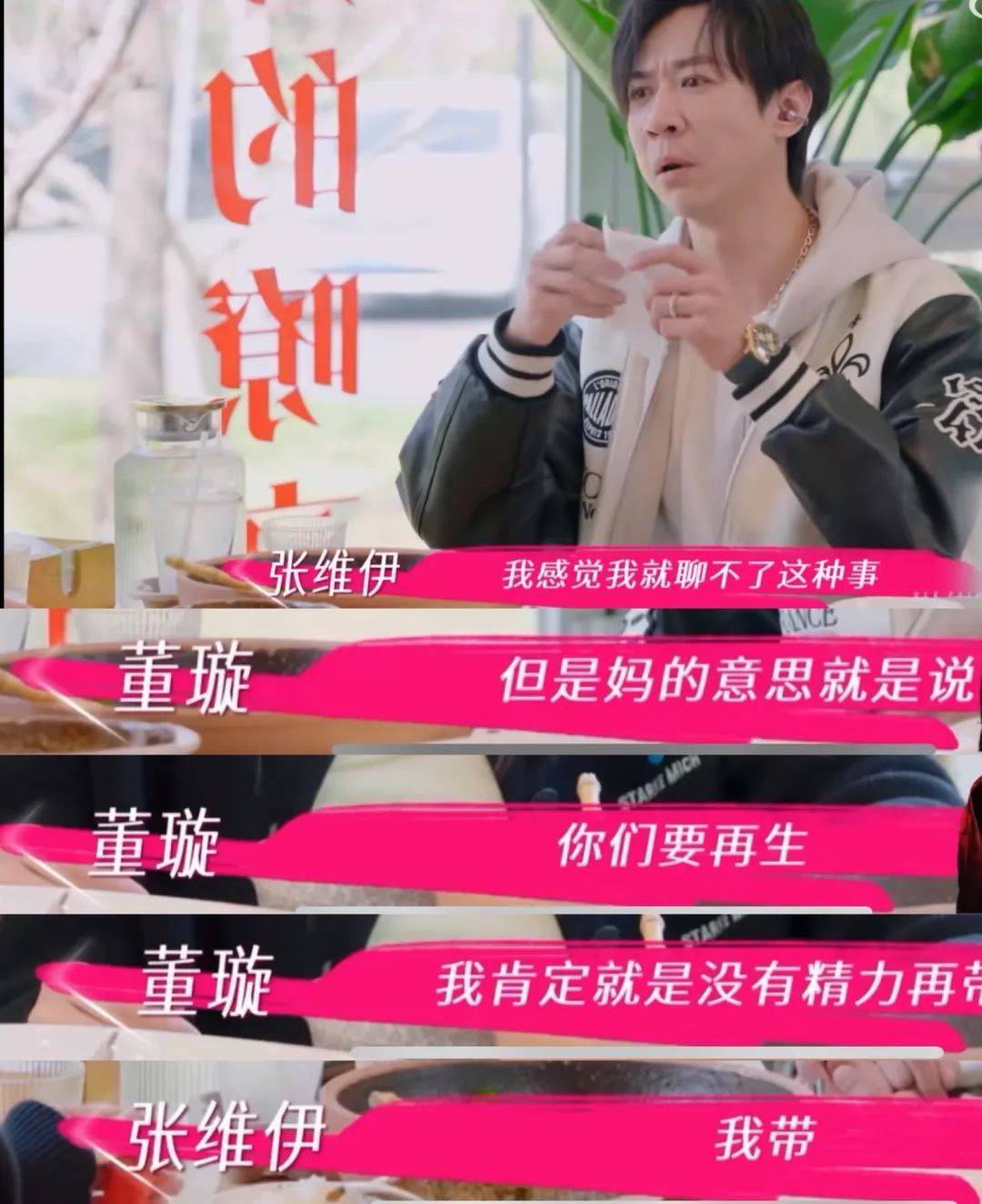 张维伊接了句:“我带”,董璇并没有轻易被说服,她表示张维伊低估了带孩子多累,一分钟都不能离开。