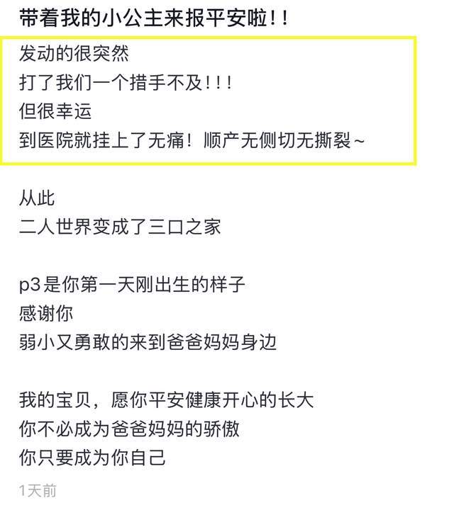 8月17号晚,网红圈再次传出喜讯,嫁到黑龙江的网红“珂珂”官宣生女。留言处,珂珂透露了其生女的一些心态以及“意外”,因为不到临产期孕肚就开始发动,这让他们夫妻两人感觉有些措手不及,但幸运的是,到达医院的时间刚刚好,顺产且无侧切诞下女儿。