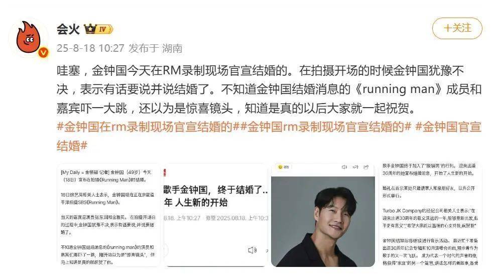 消息一出,中韩网友瞬间炸锅。有人调侃:“Running Man果然是‘just business’,十几年队友居然不知道他要结婚?”还有人玩梗:“该不会真像《我家的熊孩子》里说的,女朋友是洛杉矶认识的吧?”更有人感叹:“这保密工作做得也太绝了,连个恋爱绯闻都没传出来!”