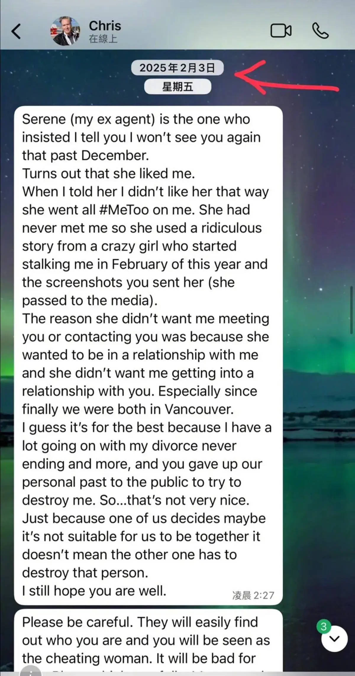 搜狐娱乐讯 8月19日,据台媒报道,葛斯齐近日爆料夏克立婚内出轨,称其在2021年就与A某发生关系,还公开了夏克立传给出A某的不雅照片。此外,葛斯齐还称另一位女性P某指控夏克立在2024年与其发生关系后不管不顾,而夏克立则称是P某强硬,还声称自己有“性功能障碍”(夏克立的这段录音并未公开)。葛斯齐另外晒出夏克立与女粉聊天记录,记录中夏克立表示自己的前经纪人Serene喜欢他,并以此要与女粉丝断联。