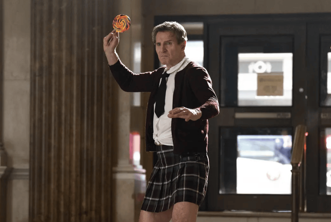 男主角是动作明星连姆·尼森(Liam Neeson),也就是《辛德勒的名单》里的“辛德勒”,辛德勒演无厘头喜剧……好吧,也是让他找到新赛道了。