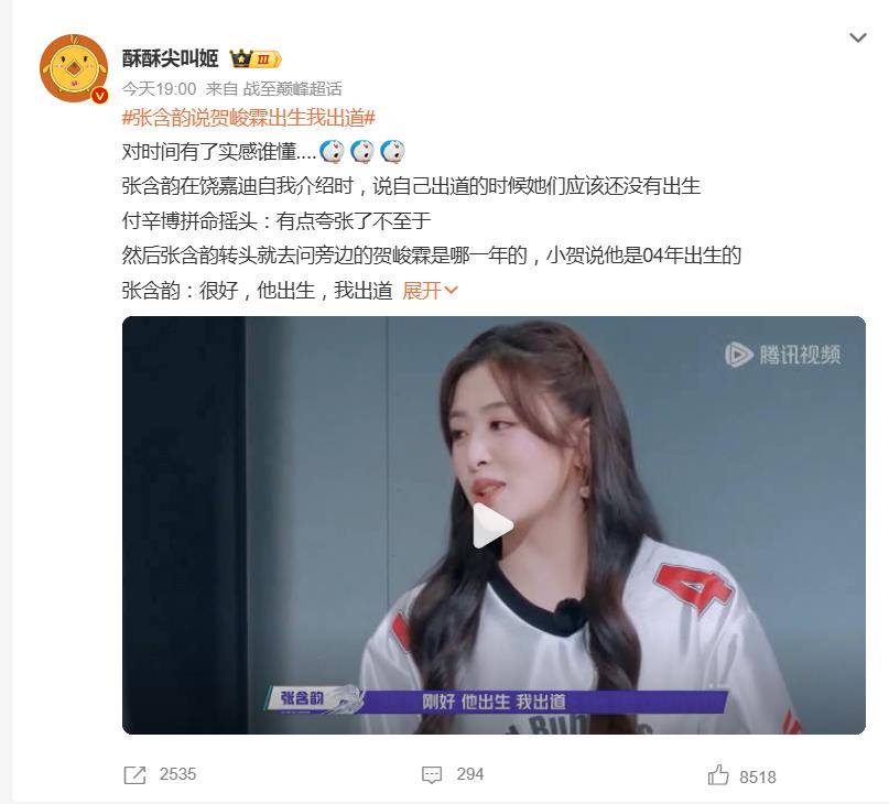 在最近的《电竞综艺战至巅峰》中,张含韵的一句感叹瞬间打破了网友们对时间的认知。当年轻选手进行自我介绍时,她忍不住说:“我出道时你们应该还没出生。”这时,付辛博在旁调侃:“你这有点夸张!”接着,张含韵好奇地问起身边的贺峻霖出生的年份,得知他是2004年出生的,她立刻 responded:“太好了,他出生的时候我已经开始我的演艺生涯了。”这一番话让屏幕前的观众集体“破防”,原来娱乐圈的“辈分杀”来得如此猛烈!