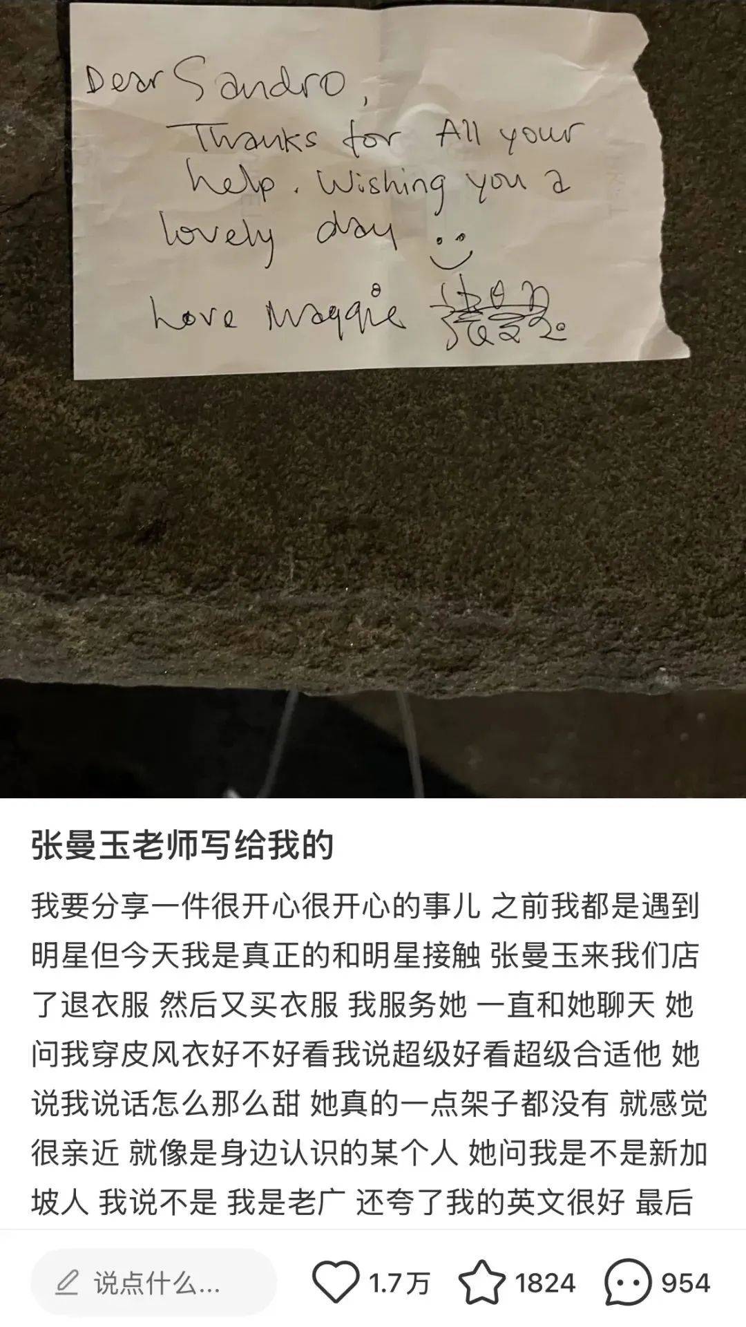偶遇张曼玉的经历,来自小红书网友@Sandro