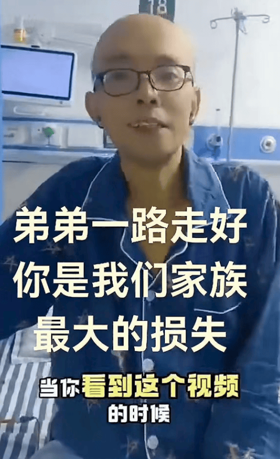 易族俭哥哥公开了弟弟临走之前的最后视频,视频中看,此时的易族俭因为接受治疗头发已经掉光,看上去身体瘦削,脸色蜡黄,趁着精神状态尚佳,易族俭特意出镜留下这段视频,与身边亲友做最后的道别。