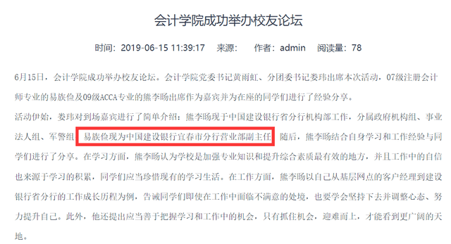 2019年,易族俭还曾受母校江西财大之邀,回校参加校友论坛,当时的他还曾鼓励广大学弟学妹坚定信念考研,因为研究生阶段十分助于自我提升。