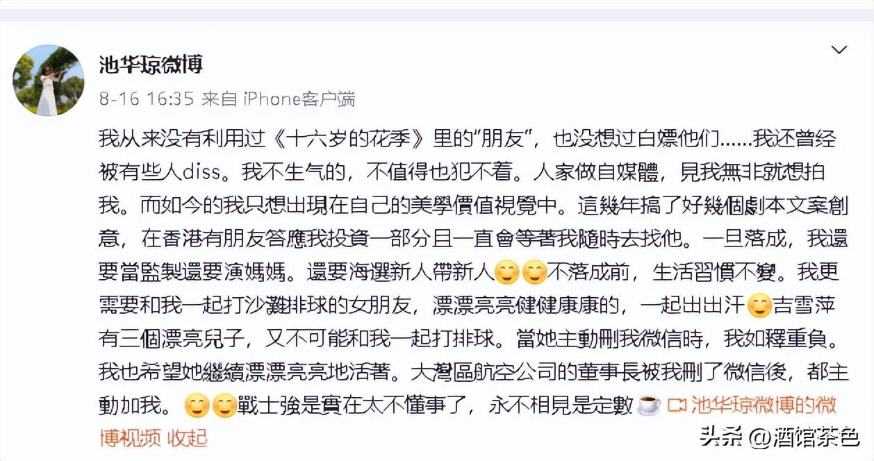 一波未平一波又起。今年《十六岁的花季》剧组聚会时,池华琼在社交媒体上的一席话直接引爆了舆论,“这些年大家各走各路,有人忙着直播带货,不是同道中人,确实没多少话题聊。”