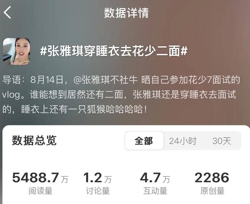 为了回应这些质疑,张雅琪主动发布了一段VLOG,详细记录了她在面试过程中的点点滴滴,力图为自己洗白。这段视频不仅是她的首次面试记录,甚至还有其他参加节目的朋友站出来支持,纷纷表示她确实是个很努力的人。然而,公开的VLOG真的能让大家信服吗?网友们显然并不这么认为。