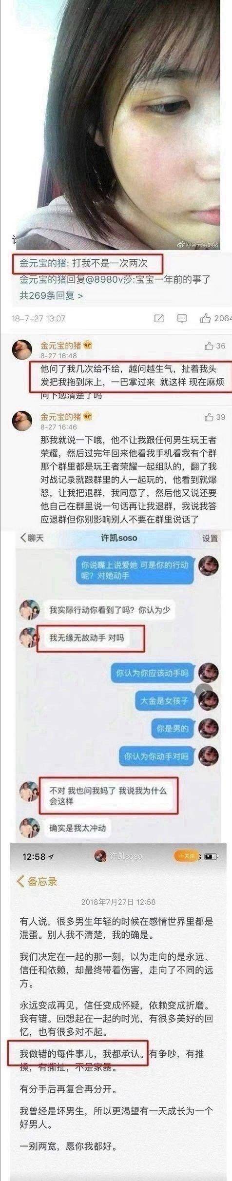 关于大金与许凯的过往,随着许荔莎的爆料,也都被扒出来了,当时大金在网上爆料,说许凯打她不止一次两次,也晒出脸被掌掴后通红的照片。