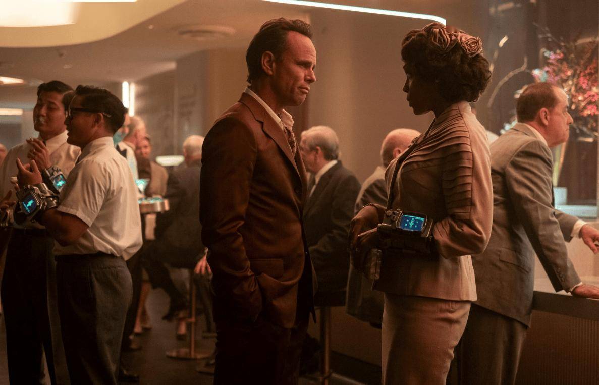 根据曝光的剧照,Walton Goggins 饰演的库珀・霍华德(Cooper Howard)在末世前现身拉斯维加斯,展现了他成为“食尸鬼”前的人类生活片段。这一角色设定延续了第一季结尾的悬念,为第二季埋下更多伏笔。