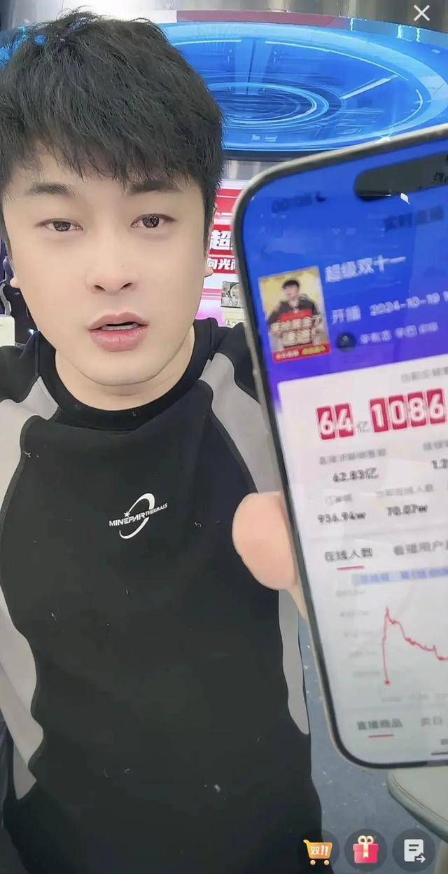 2024年9月,辛巴因为和小杨哥的“大闸蟹争议”被快手封禁,随后辛巴在10月高调宣布复播,复播当天,辛巴在直播间展示手机上的销售数据,表示直播GMV超过64亿元。
