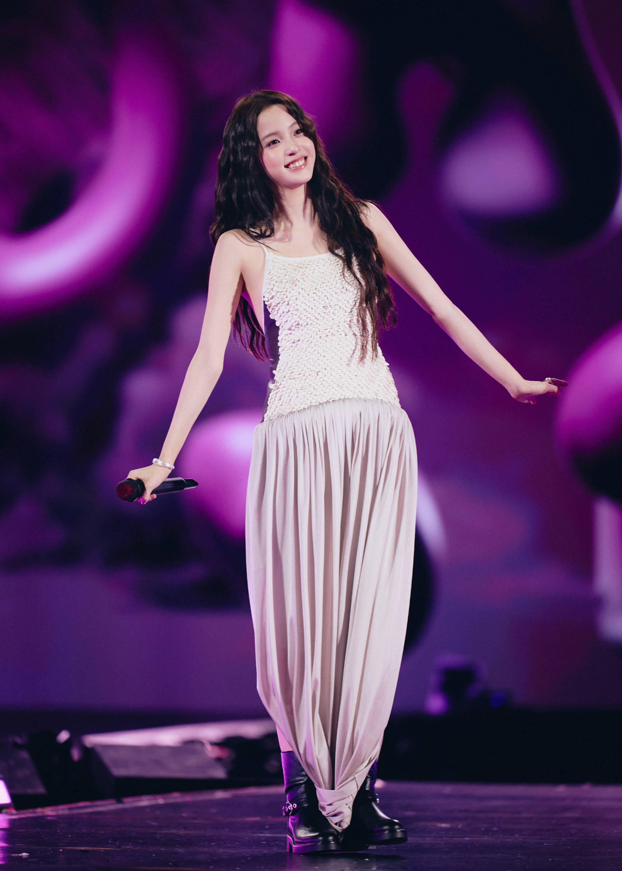 搜狐娱乐讯 8月23日,欧阳娜娜现身汪苏泷演唱会,演唱会现场的她穿着白色裙装,卷发优雅迷人,拉着大提琴,氛围超好。