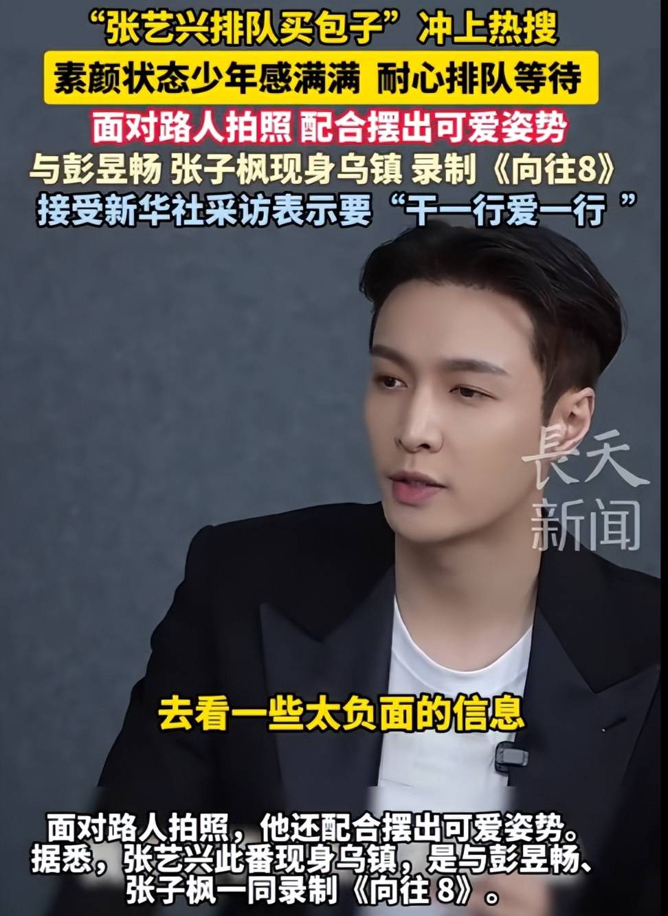 一大早上,乌镇的一家老字号早餐店门口大排长龙,张艺兴也在其中。