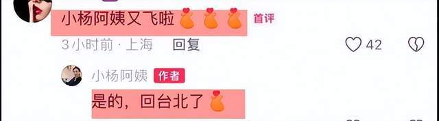 网友们纷纷在评论区留言问:小杨阿姨回中国台湾?她回答说:是的!从她与网友们的对话中看,很亲切。虽然是一个保姆,但是很多网友很喜欢她!