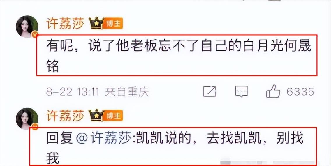 在评论区,许荔莎回复网友说,于正忘不了自己的白月光何晟铭。
