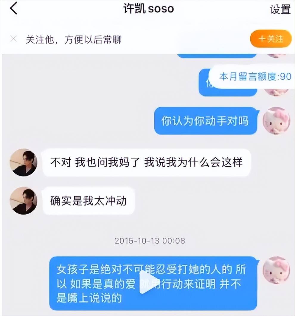 但其实,这期间他们的联系并没有断,许凯也一直在求复合,还说要戒酒。