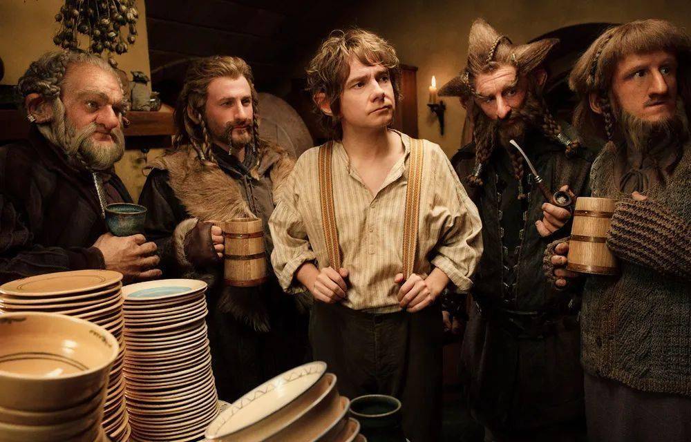 “电影的故事发生自《指环王》首部前约60年,霍比特人比尔博・巴金斯在巫师甘道夫和13名矮人的陪伴下,向东横越中土大陆,踏上夺回被恶龙‘史矛革’占据的孤山矮人王国的冒险之旅。途中,比尔博得到咕噜姆的金戒指,而这枚看似普通的戒指,将悄然影响中土世界的命运。”