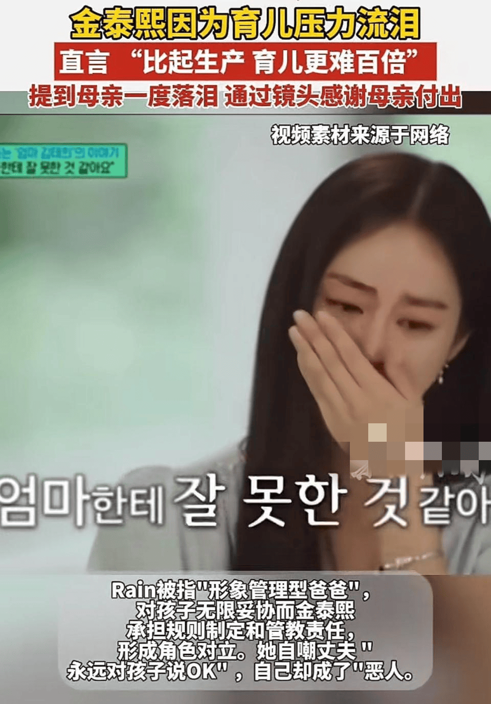 45岁韩国女演员金泰熙在近日播出的访谈节目中谈及婚后生活,坦言育儿压力巨大,一度泪洒现场,引发众多观众共鸣。
